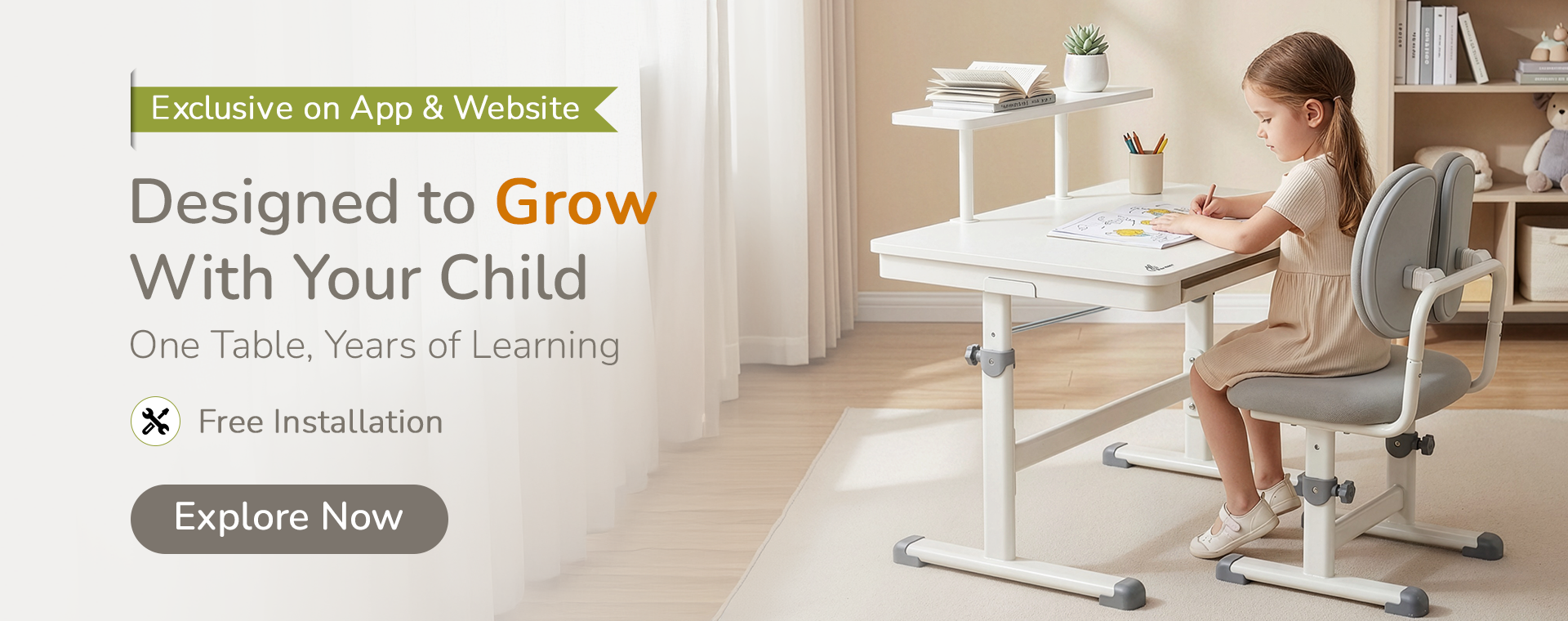 Kiddie Grow Edge Kids Study Table & Chair Set for 3–15 Years, Hydraulic Height Adjustable, Ergonomic Chair, Storage Drawer, Upto 100 kgNo reviewsAt R for Rabbit, we believe that the right study environment can shape a child’s confidence, focus and love for learning. R for Rabbit’s Kiddie Grow Edge is thoughtfully designed to give children a dedicated space that supports healthy posture, encourages independence and makes...