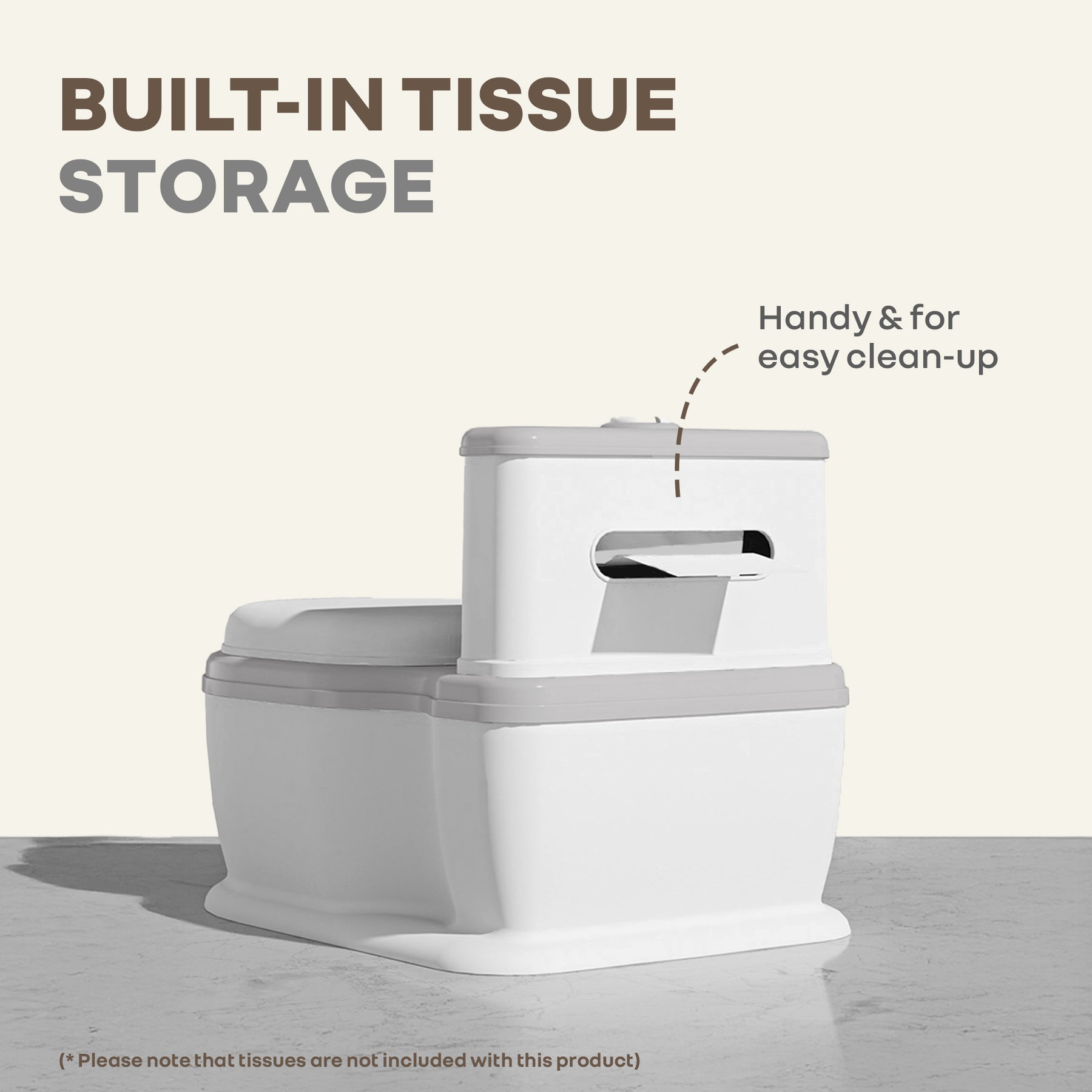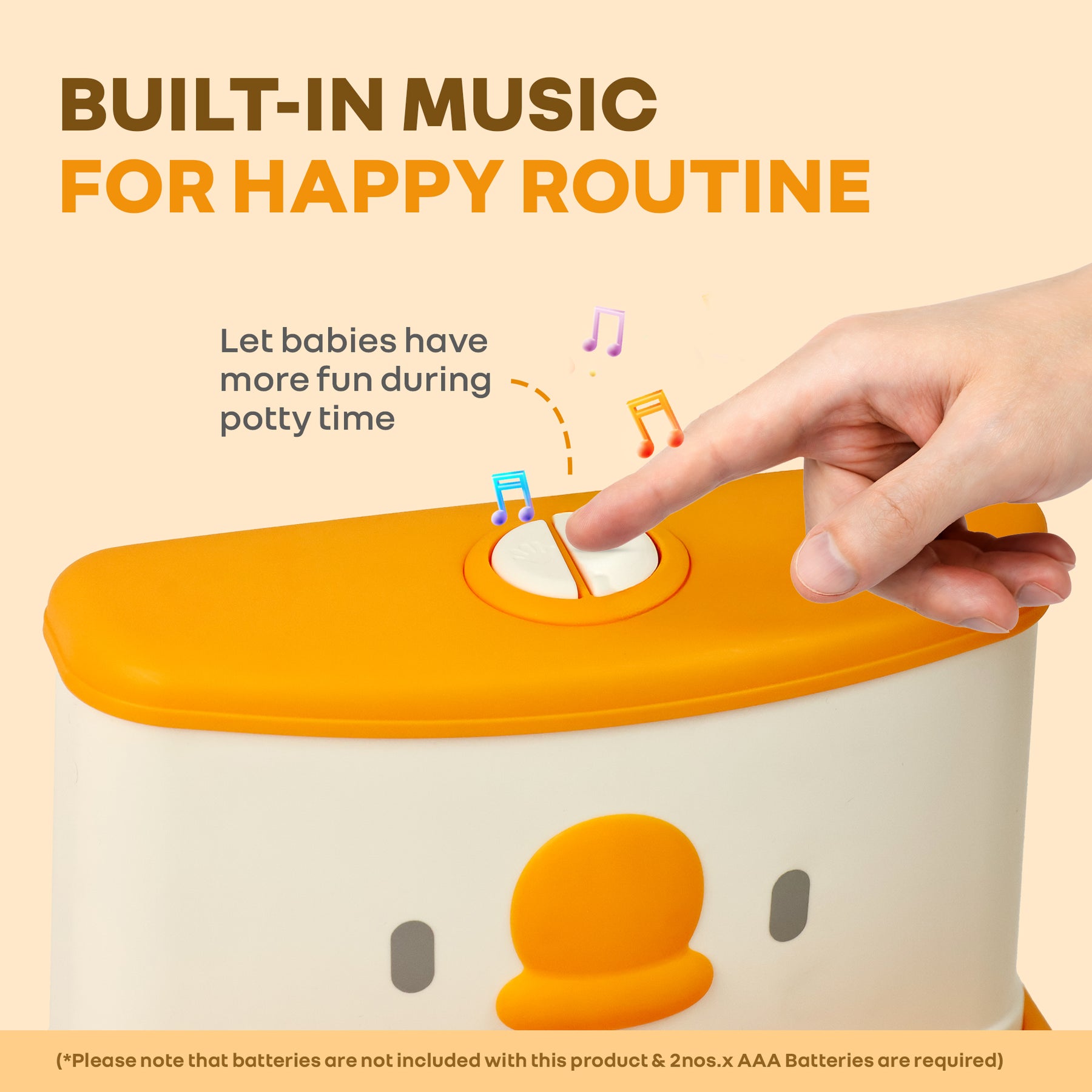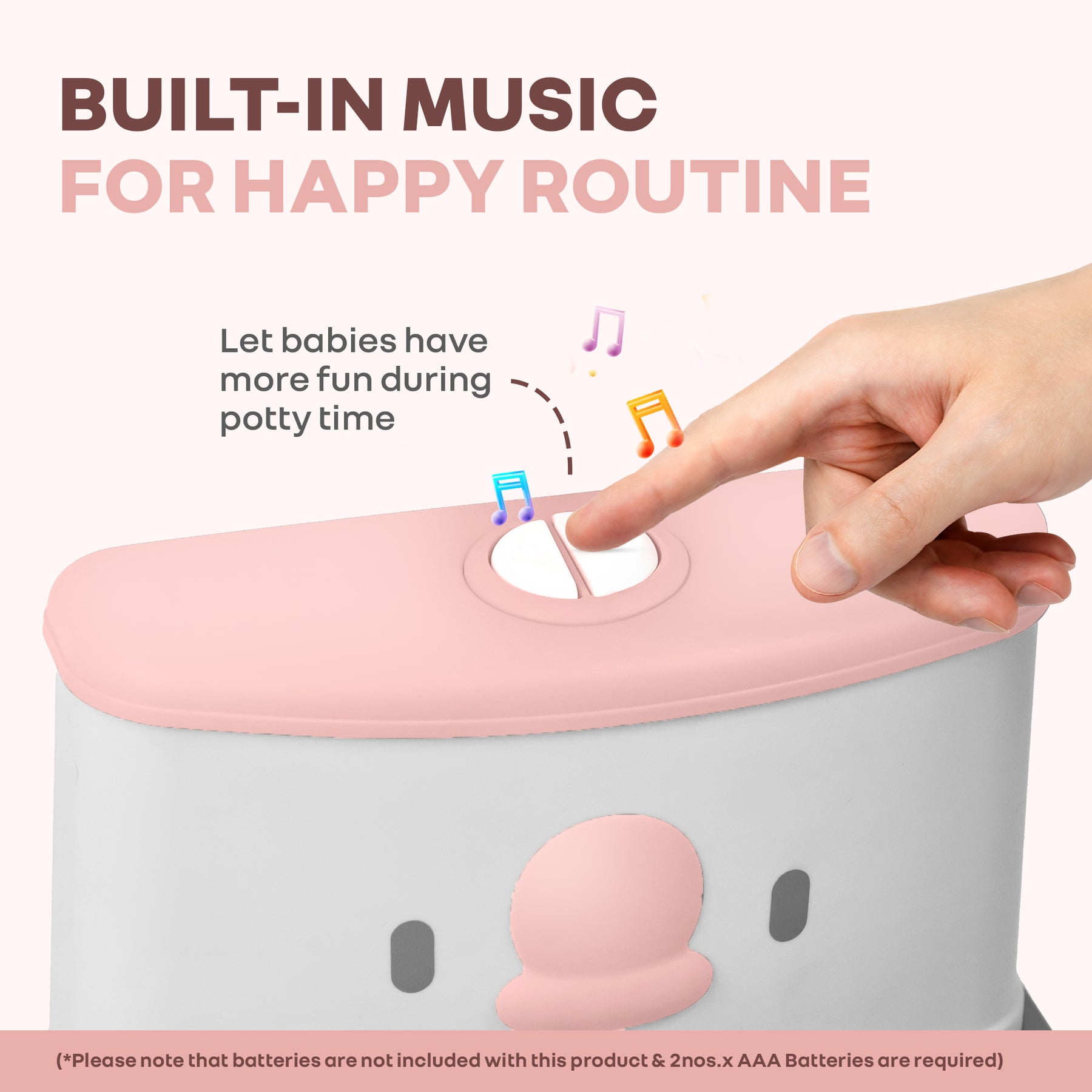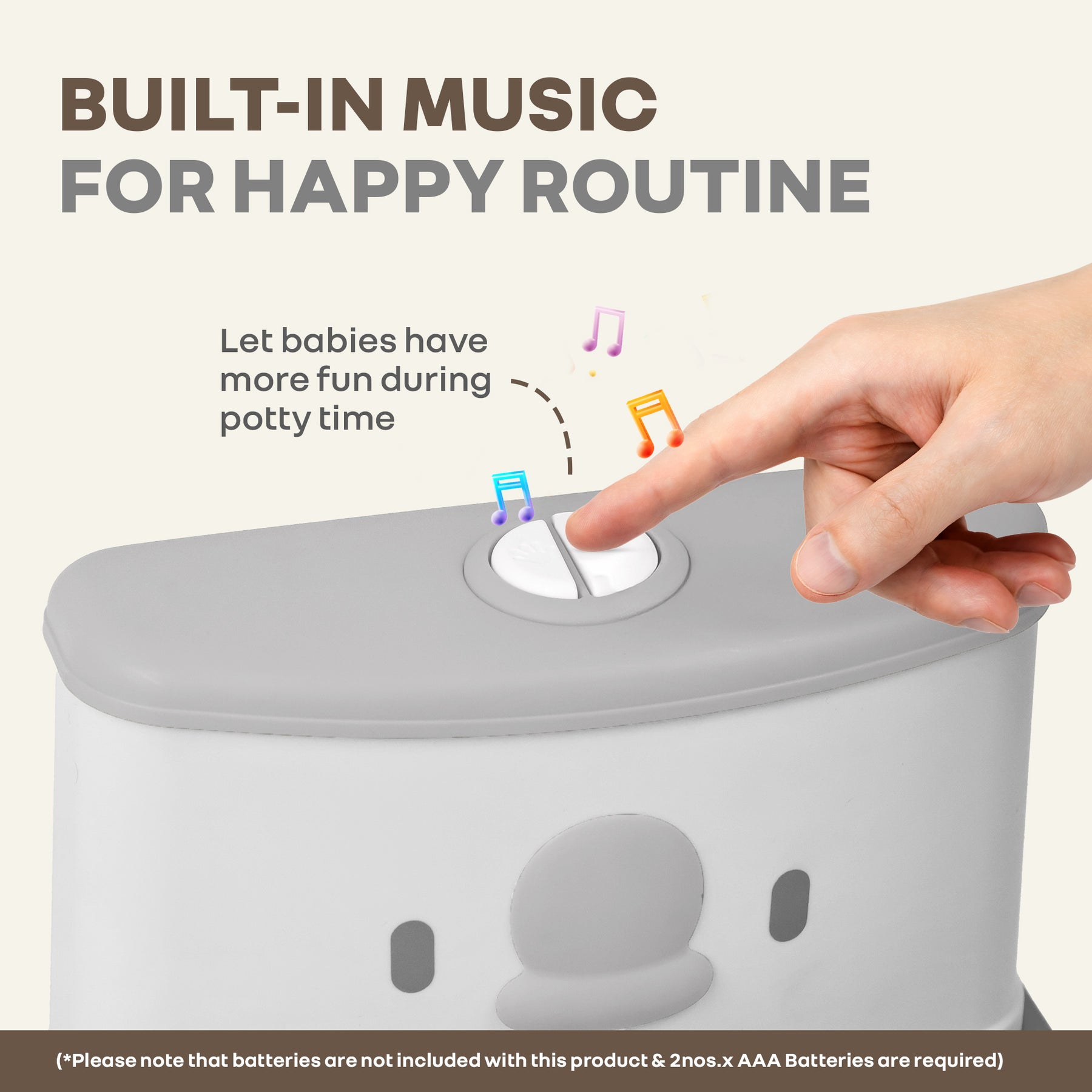 R for Rabbit is introducing Little Grownup Pixie, a perfect mini toilet for the little learners. Suitable for aiding toddlers in the potty-training process, the potty seat is made from BPA-free materials, ensuring that their little ones stay away from any potential chemical exposure. It has an ergonomic backrest and soft cushioned seat that is fun, safe, and super comfortable. The seat has been modelled after a real toilet to assist your child in the transition using maximum ease and comfort. Lightweight and portable, it can simply be folded away or taken wherever it needs to go. Extra helpful features include a tissue compartment and a removable bowl to help foster independence and hygiene in the child at this early development stage. Again, it provides built-in music that engage and entertain a toddler during this potty-training phase. In this way, a music feature may support the child's physical comfort by simultaneously promoting sensory engagement, postural control, and good training habits. Anti-slip pads also step in here to prevent unwanted tumbles and make the child feel confident sitting upright.