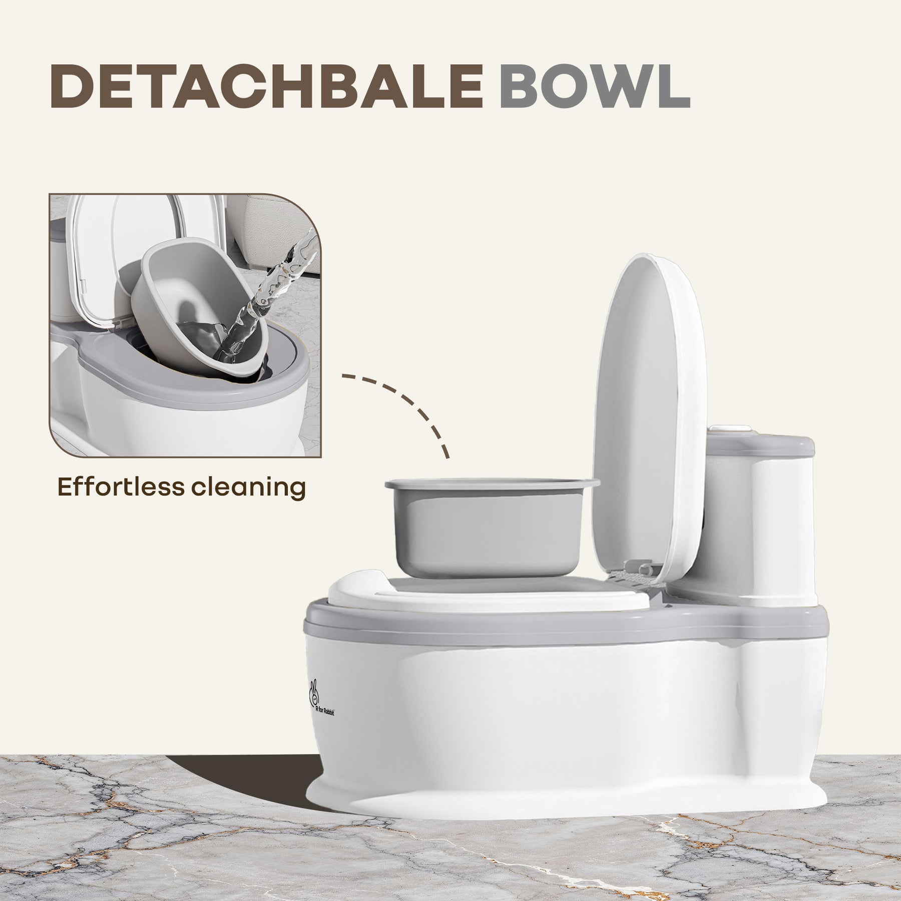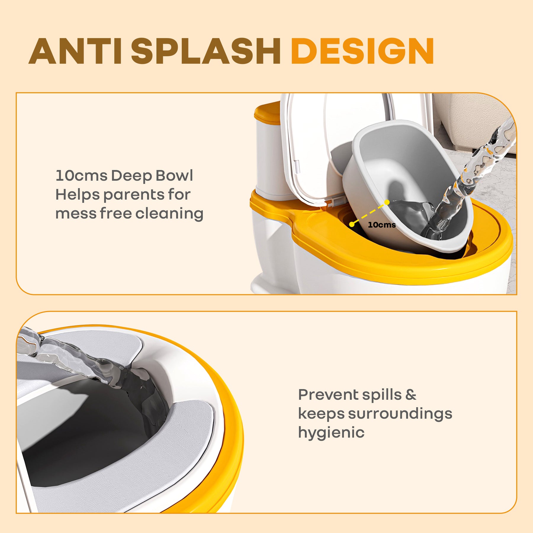 Built-In Music System: This little potty seat also includes a built-in music system to stimulate the children’s auditory learning and develop a positive association with their potty time. It would help by keeping them entertained while doing their business.