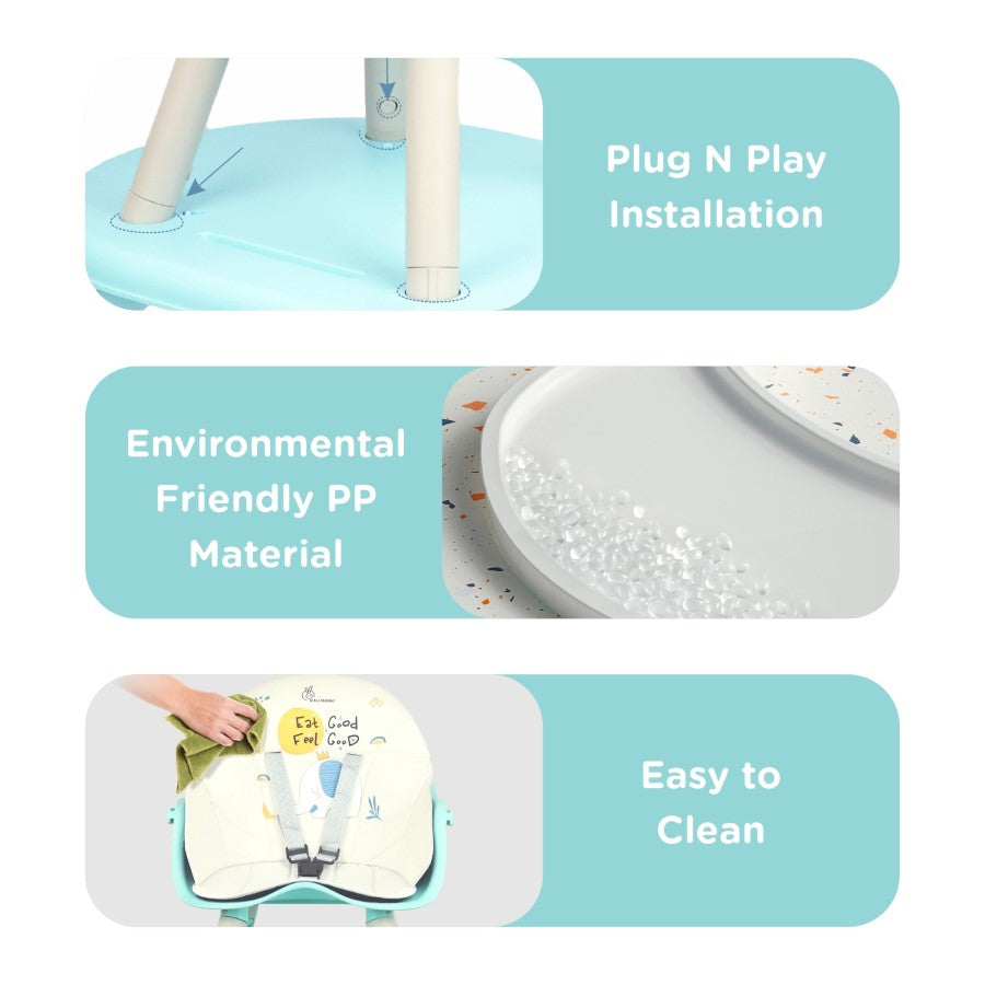 3-in-1 Convertible: This product is multi-purpose and a smart parenting investment, as it can be converted into a highchair, toddler chair, and study table for the babies. This further also reduces the unnecessary clutter in the home space.