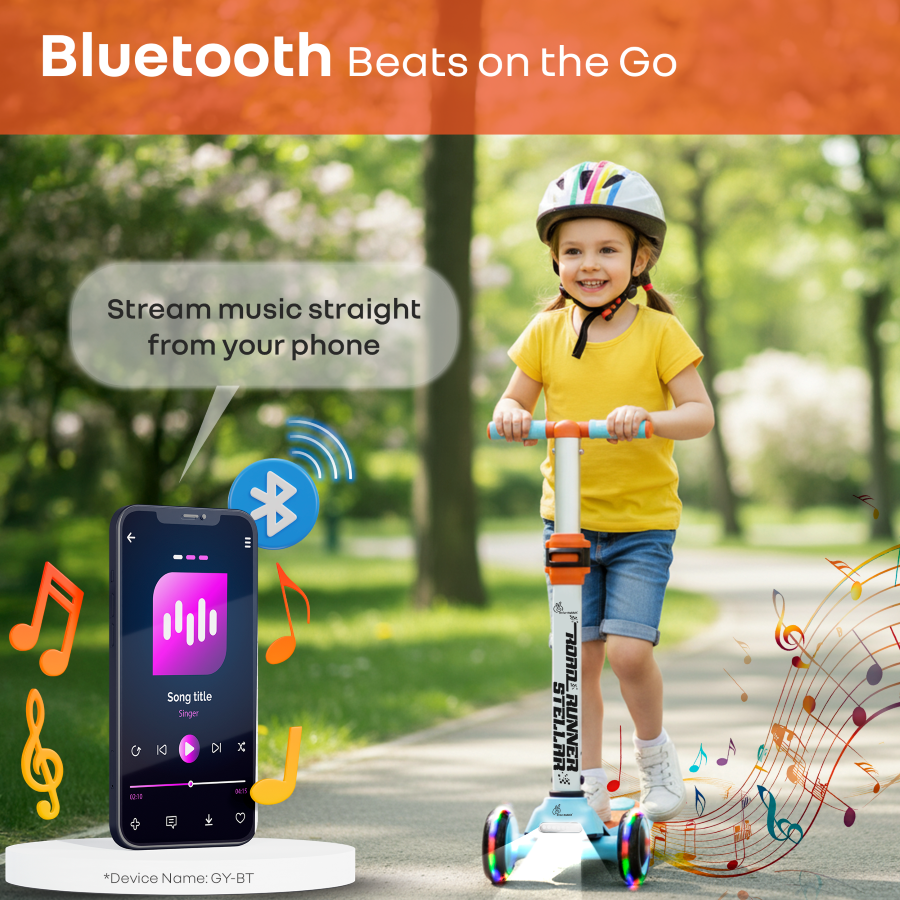 Road Runner Stellar - LED Scooter for Kids with Bluetooth Music, Adjustable Height & Smooth Ride