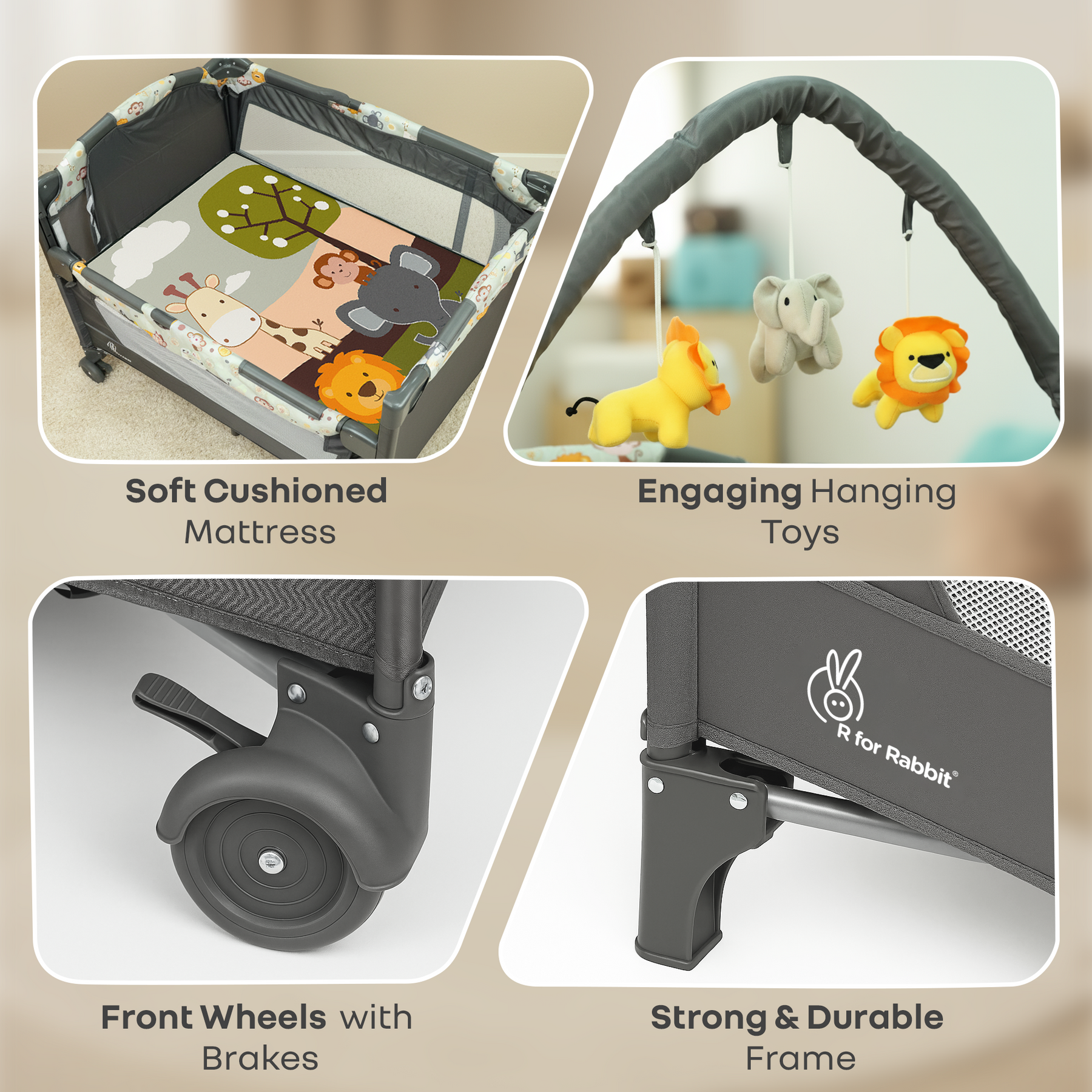 Hide N Seek Bliss Baby Cot - Safe, Cozy & Foldable Cot for Babies 0-3 Years