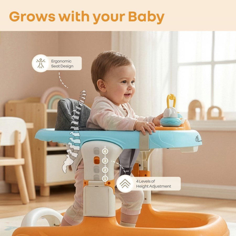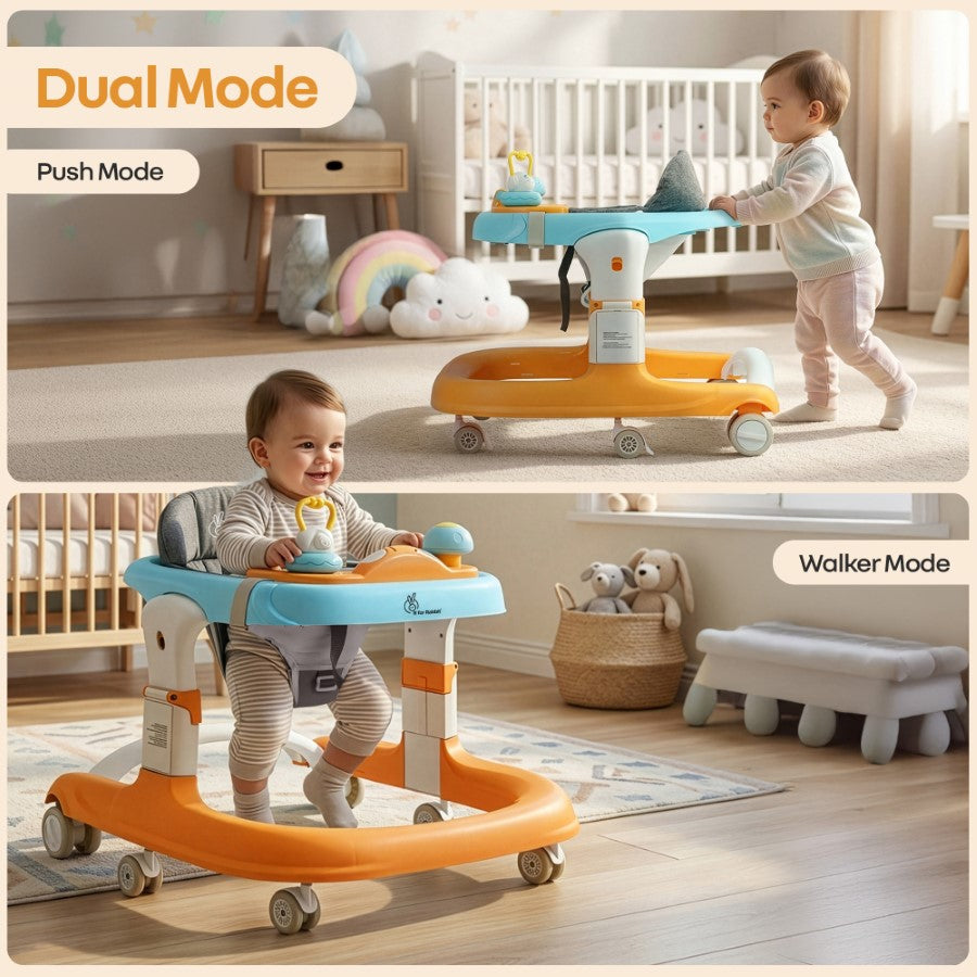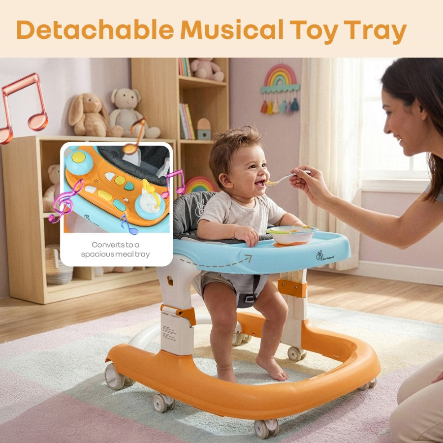 Introducing R for Rabbit Little Feet Sportz, a 2-in-1 walker turn push walker, the multifaceted baby walker for your little munchkin’s adventurous stroll around. This toddler walker transitions effortlessly into a push walker with a detachable music toy bar, which transforms into a meal tray for your little one’s supper later. This musical baby walker also has adjustable speed control wheels, 4 levels height adjustment, and an easy fold, store, and carry design to ensure it is the best walker for your tiny tots! Curious about the play? Secure your R for Rabbit Little Feet Sportz walker today!