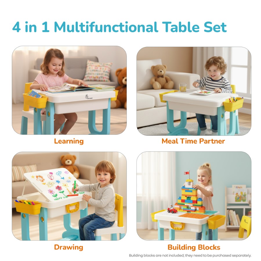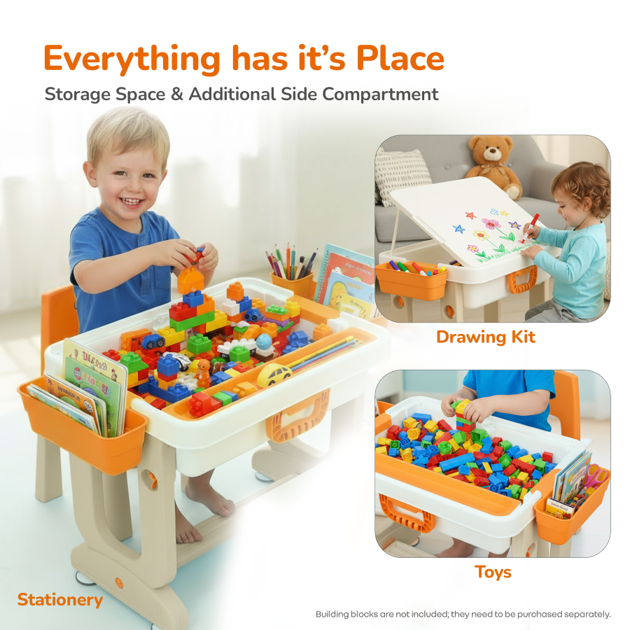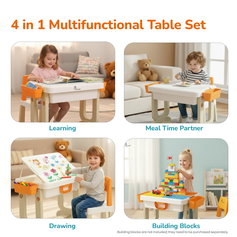 - 4-In-1 Multifunctional: R for Rabbit Little Genius is multi-functional and can be used as a study table, building blocks table, drawing table, and for mealtime as well.