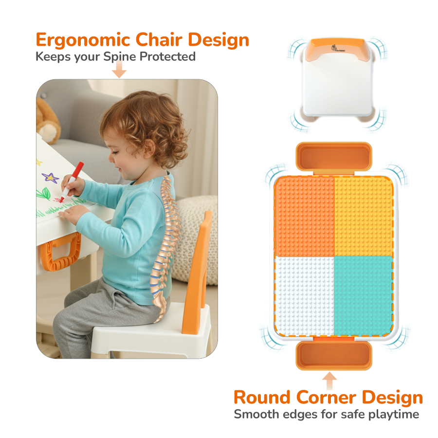 Say hello to "Little Genius Learner", R for Rabbit's Kids Study Table Set with Chair. It's smart, safe, and practical. R for Rabbit Little Genius Learner is here to spark your child's creativity and imagination. Installing it is as simple as 1-2-3. This table and chair set turns studying into an exciting journey of discovery. It makes learning effortless and fun for your little one. Be it engaging study time, artistic sketching, stimulating building blocks, and enjoyable eating time, Little Genius Learner sets the stage for every enlightening and playful experience for your little one.