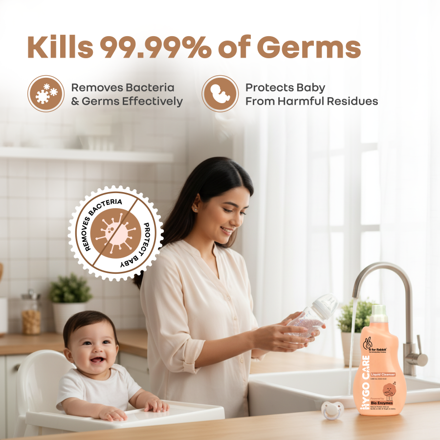 R for Rabbit is introducing HygoCare Liquid Cleanser, a gentle cleaning agent for a healthier start in life. This cleanser is thoughtfully formulated with bio-enzymes to provide safe, effective, and eco-conscious cleaning for your baby’s feeding essentials, toys, and utensils. Early childhood is a critical stage of immune and sensory development, ensuring baby’s protection from harmful residues and toxic leftover chemicals, and all this without compromising on cleanliness. This cleanser is formulated for babies, as they tend to explore their world through touch and taste. This makes hygiene an important precursor during these early months. Also, HygoCare liquid cleanser is a plant-based, toxin-free formula that gives parents the confidence to keep baby items truly clean. This further supports healthy development and reduces exposure to unwanted irritants, making it safe for babies.