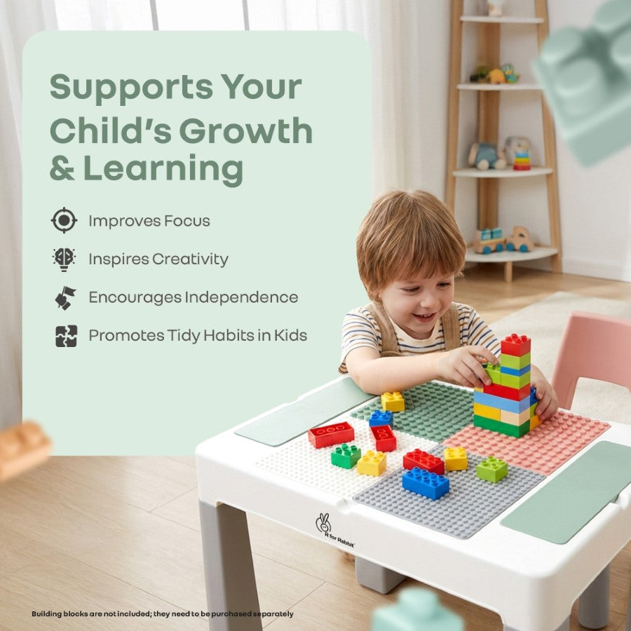 Little Genius Learner Neo Kids Table & Chair Set with Storage, Height Booster, Lego-Compatible Activity Table & Safety Rounded Edges (3–7 Years)