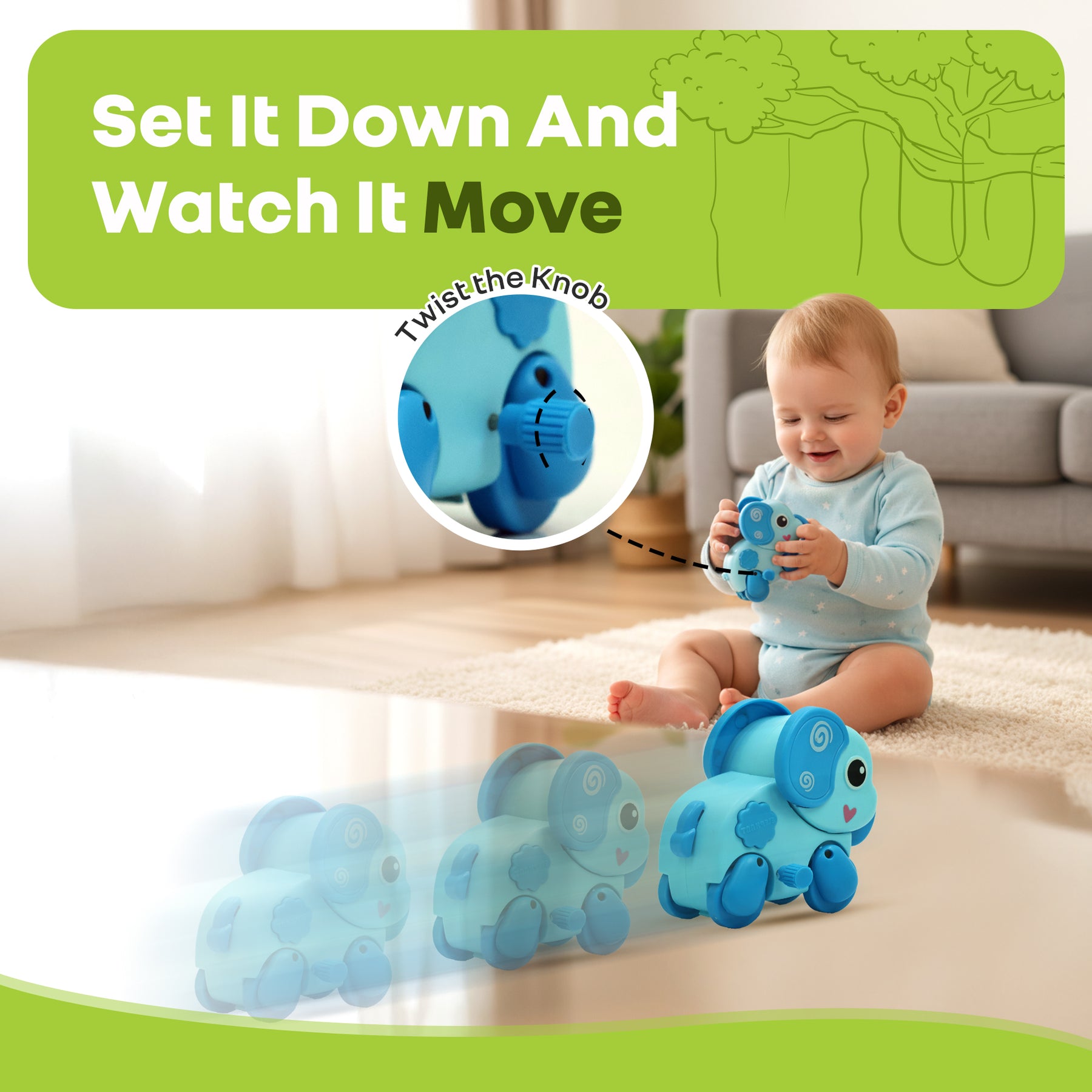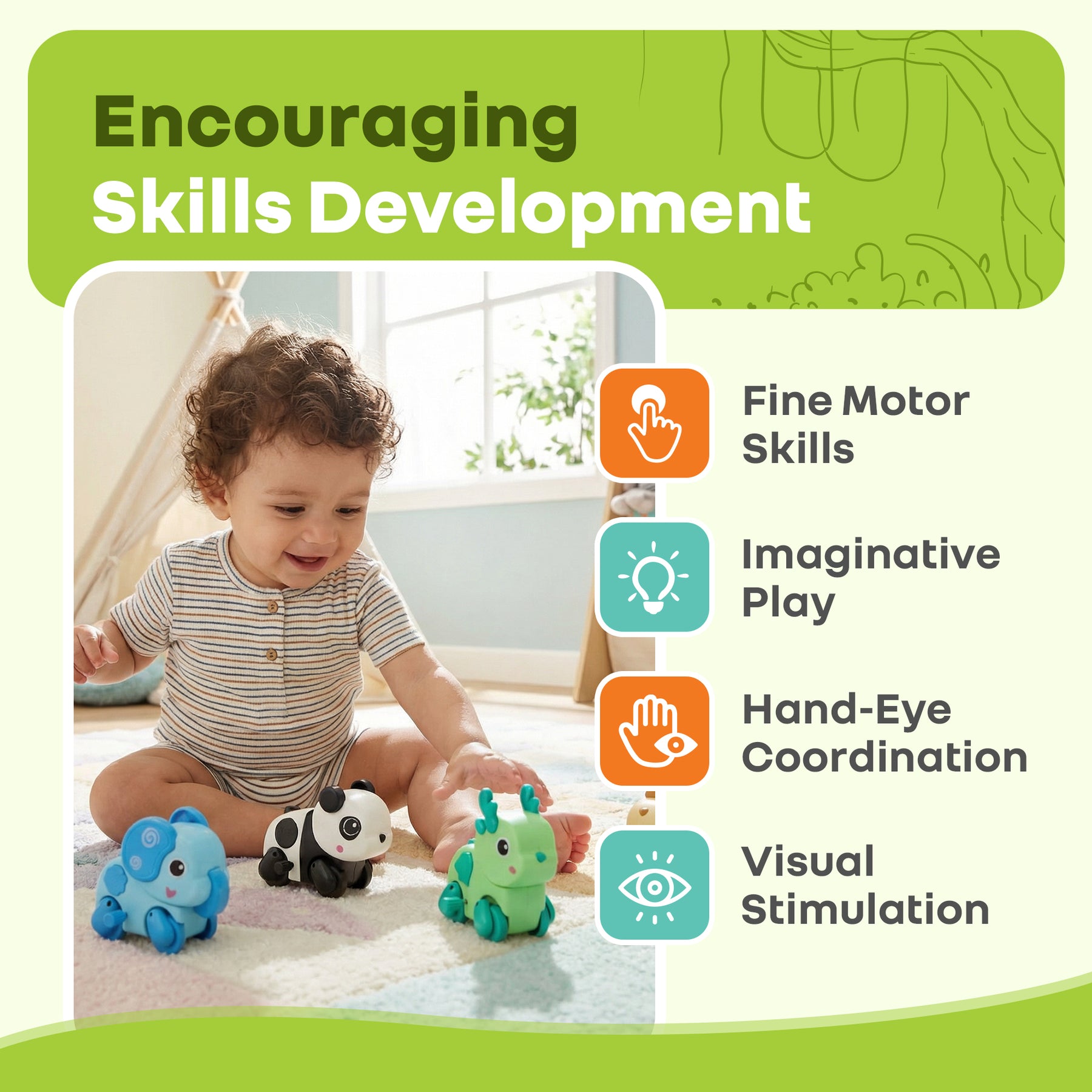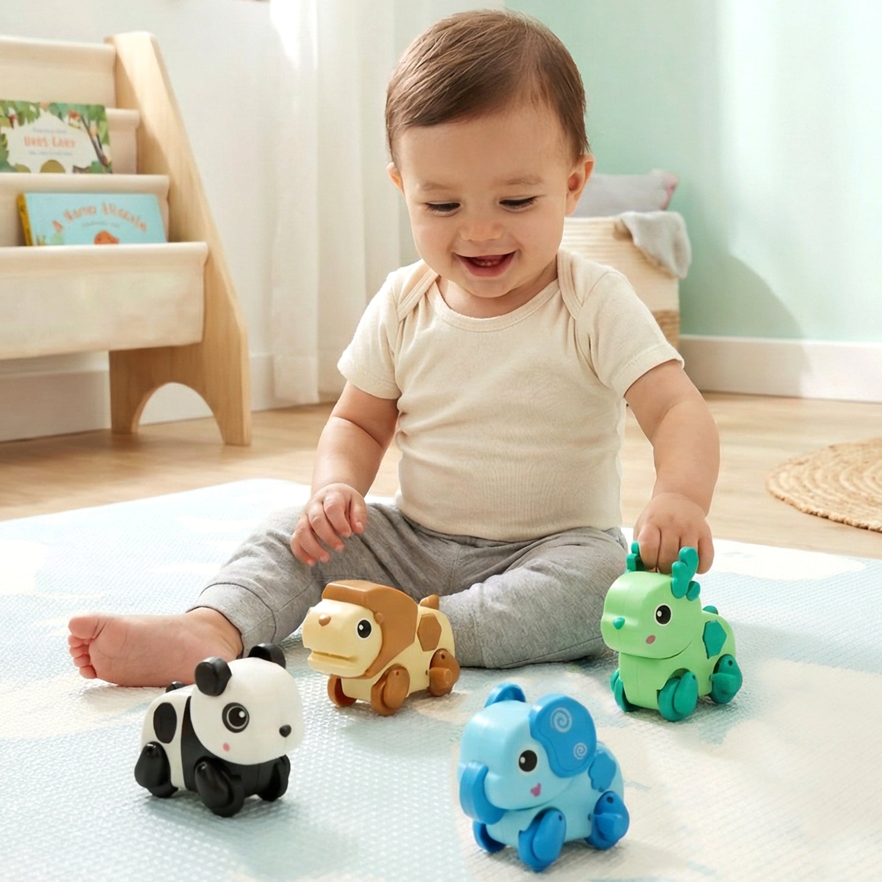 Orapple Safari - Set of 4 Windup Animal Toys for Babies (Panda, Lion, Elephant, Deer)