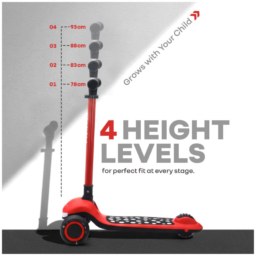 - Four Levels Height Adjustment: It is also designed to keep up with your child’s growth spurts, with adjustable handlebar, ensuring long-term use and comfort. This scooter is designed to grow with your little one, becoming their best riding companion year after year.