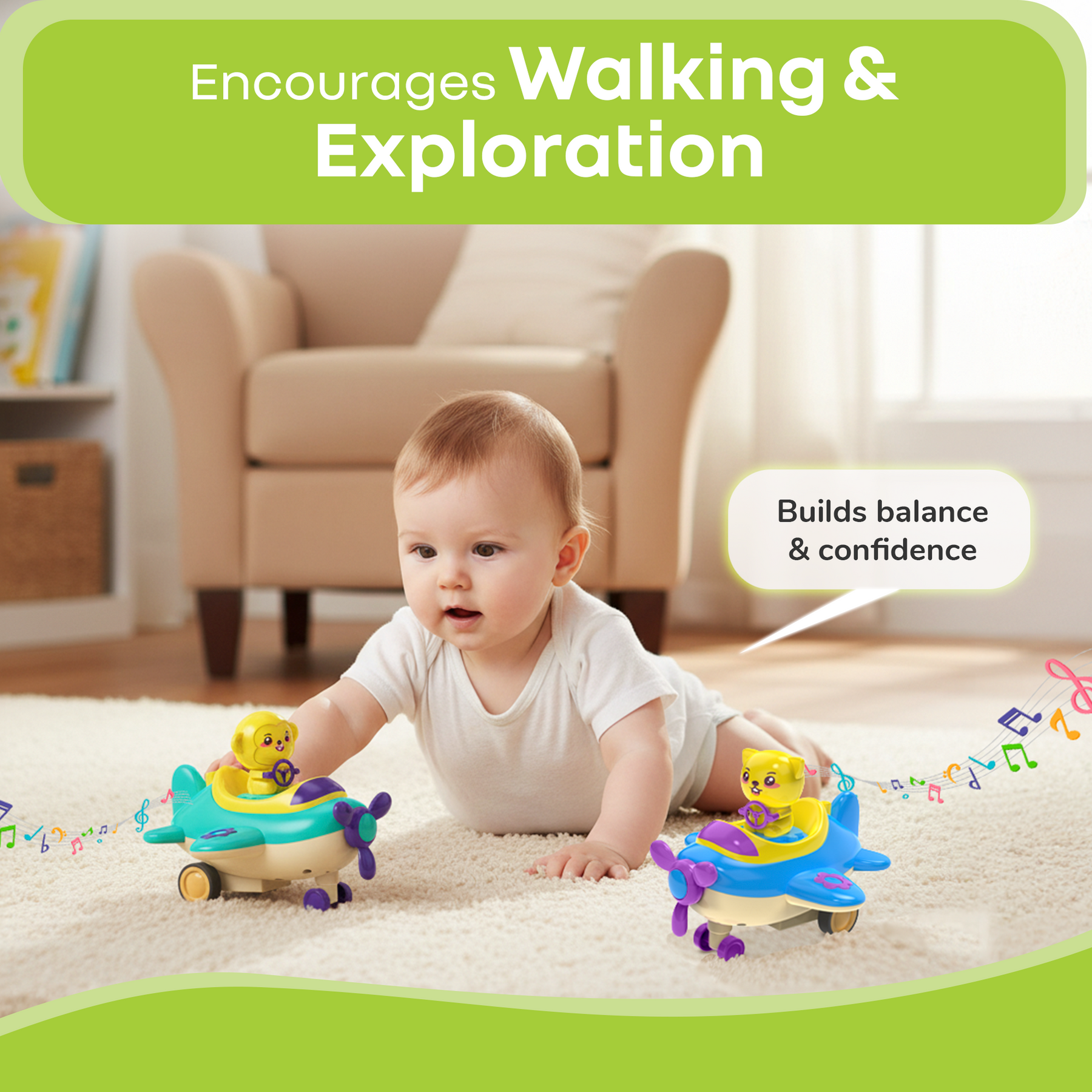 Orapple Aero Rider - BPA-Free, Non-Toxic Baby Airplane Push Toy with Lights & Music (Pack of 2)