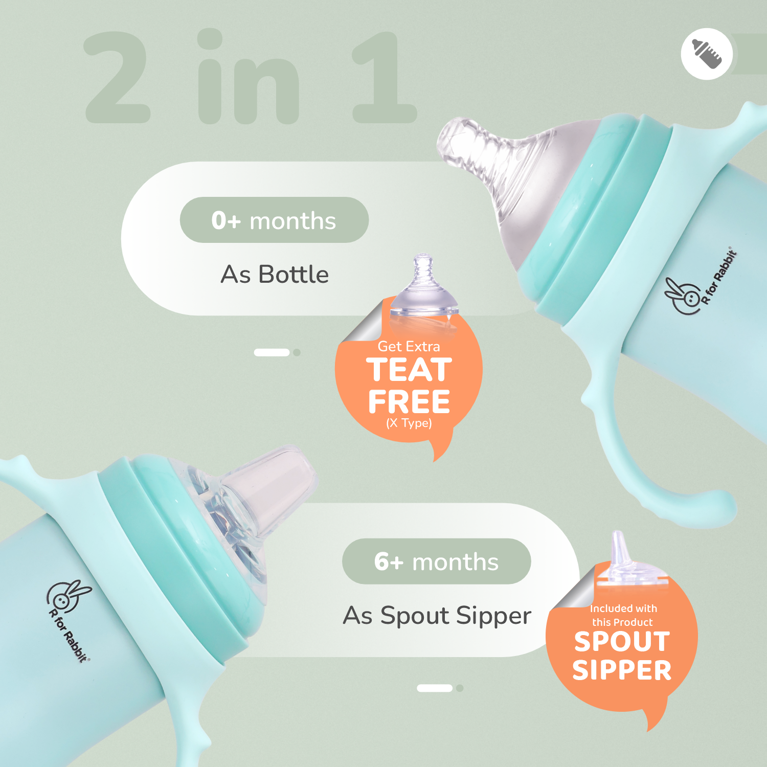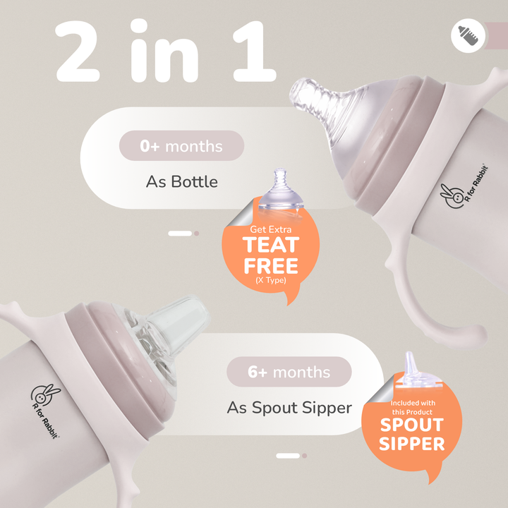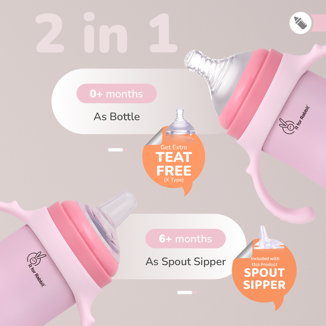Free Teat: Now, get an extra teat free with R for Rabbit Steebo Fusion Spout Sipper. This bottle comes with X size(6m+) of teat. S & M type of teat needs to be purchased separately.