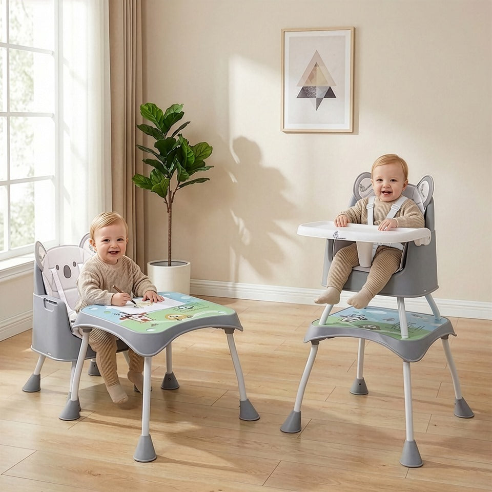 4 in 1 Cherry Berry Grand High Chair - Convertible, Removable Tray, Non Slippery-Anti Tipping, Booster Seat, Study Table & Chair Convertible