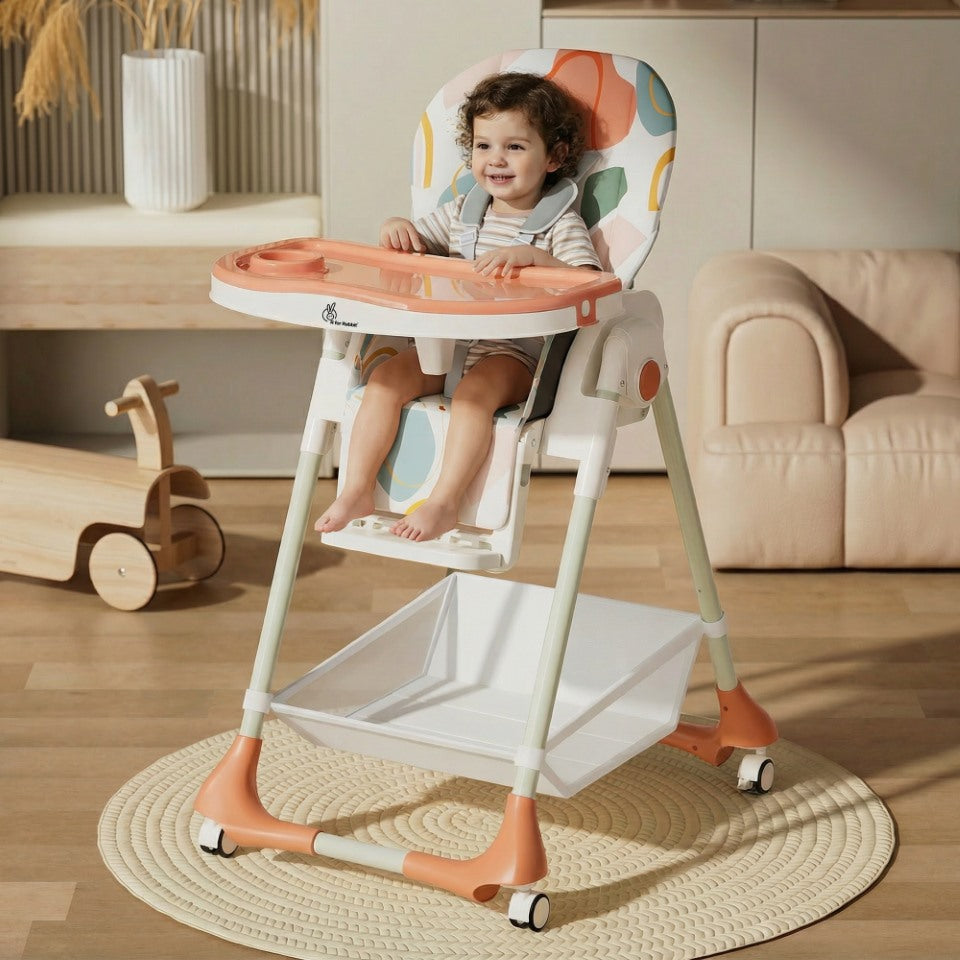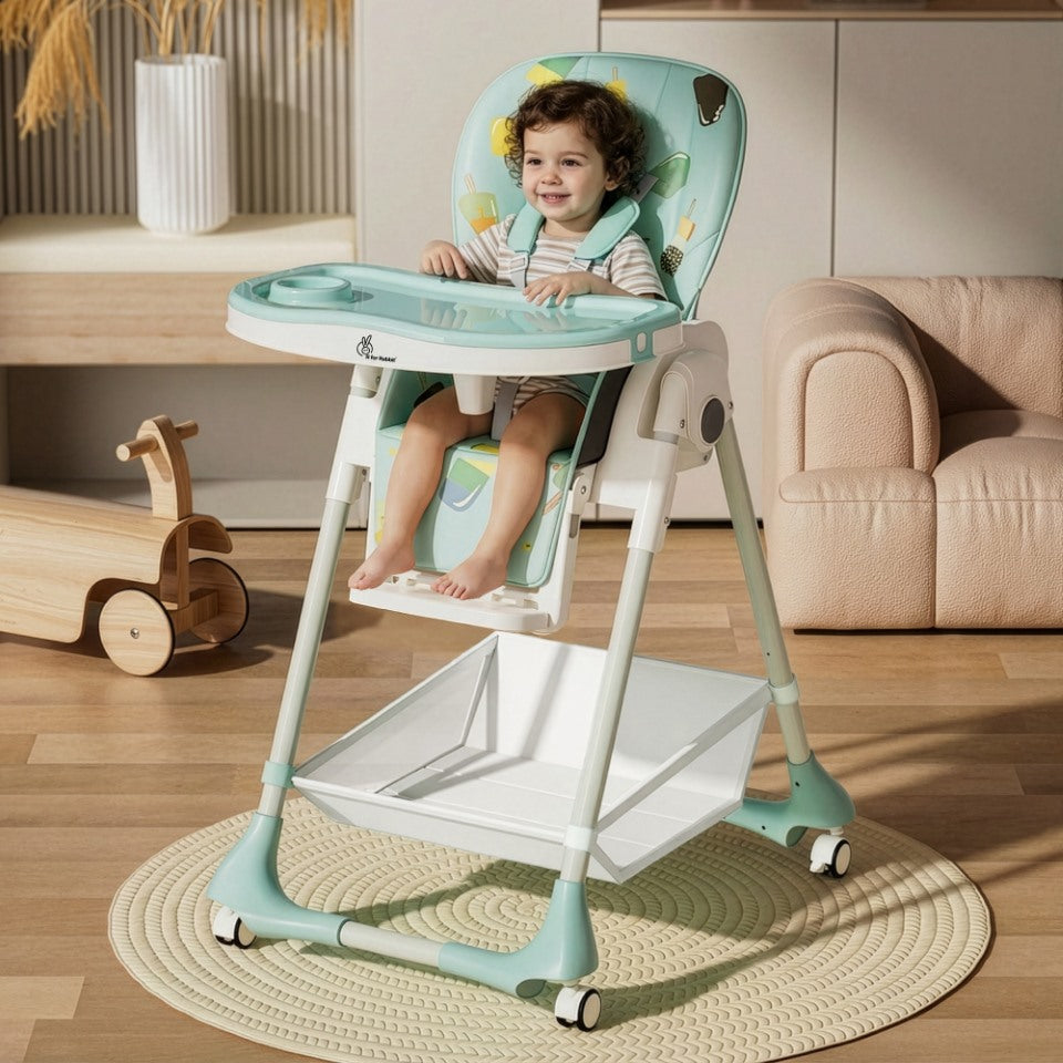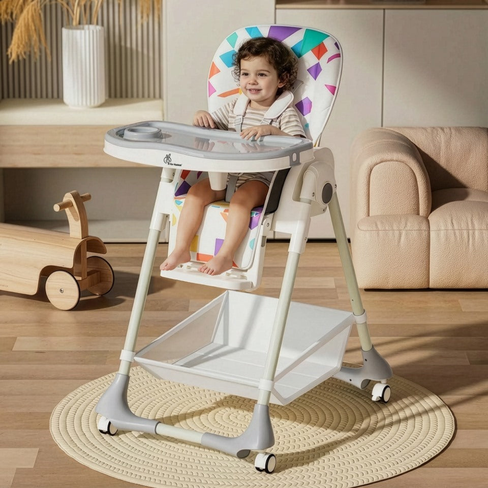 Wheels with Stopper: Marshmallow High Chair is equipped with wheels to move and place it easily anywhere as required. It also comes with wheels stopper to ensure the high chair doesn't move when your baby is sitting in it.