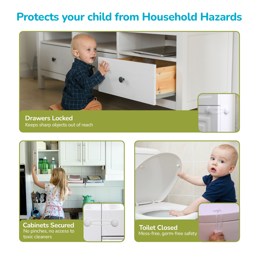 Versatile Use: Secure multiple areas such as cabinet doors, lockers, toilet seats, microwave doors, and more. Perfect for protecting curious little hands from potential hazards.