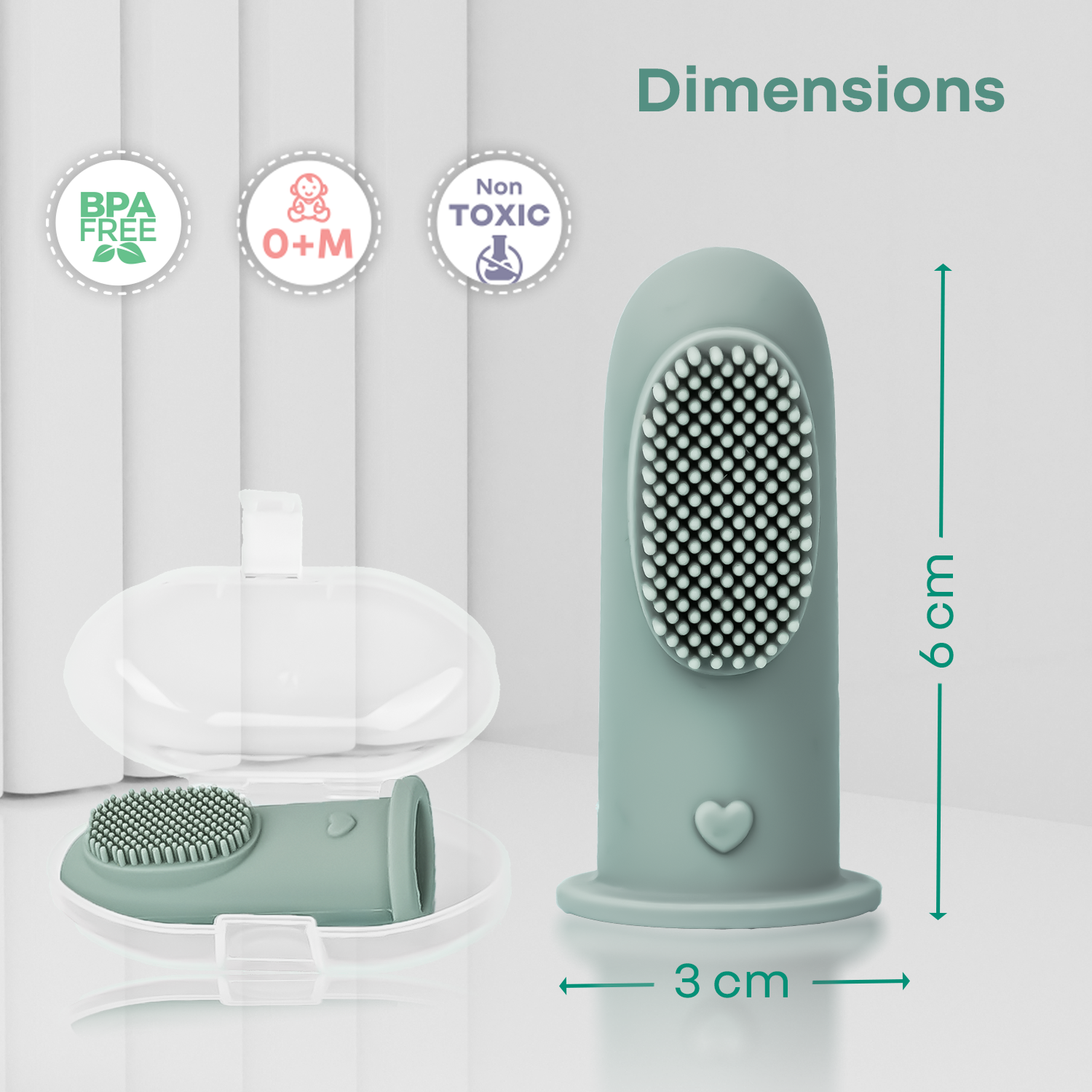 Hygienic Storage Case: This helps keep the Tiny Smiles Gummy safe and clean making it ready to use just about anywhere.  It also prevents cross-contamination while encouraging cleanliness, thus providing peace of mind to the parents.