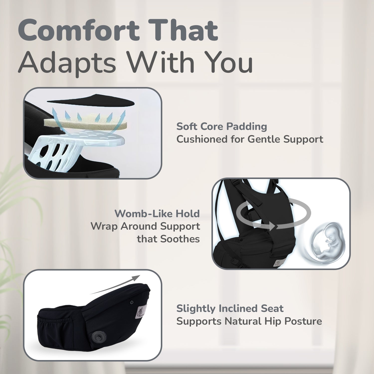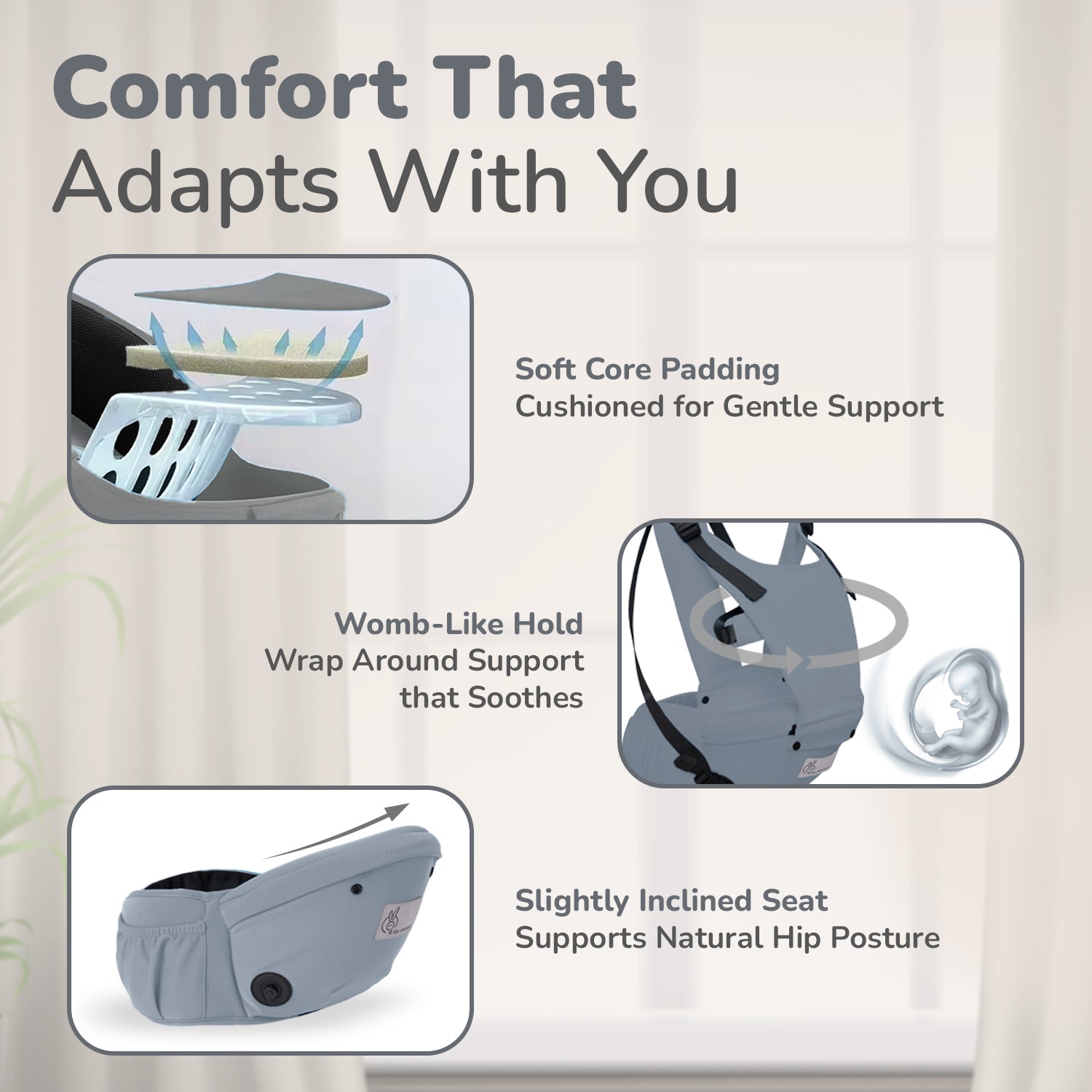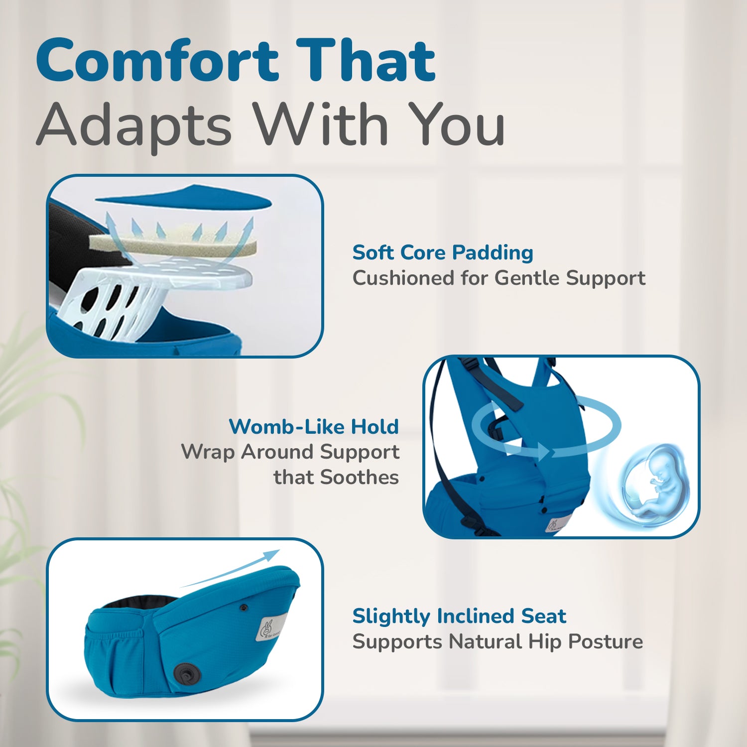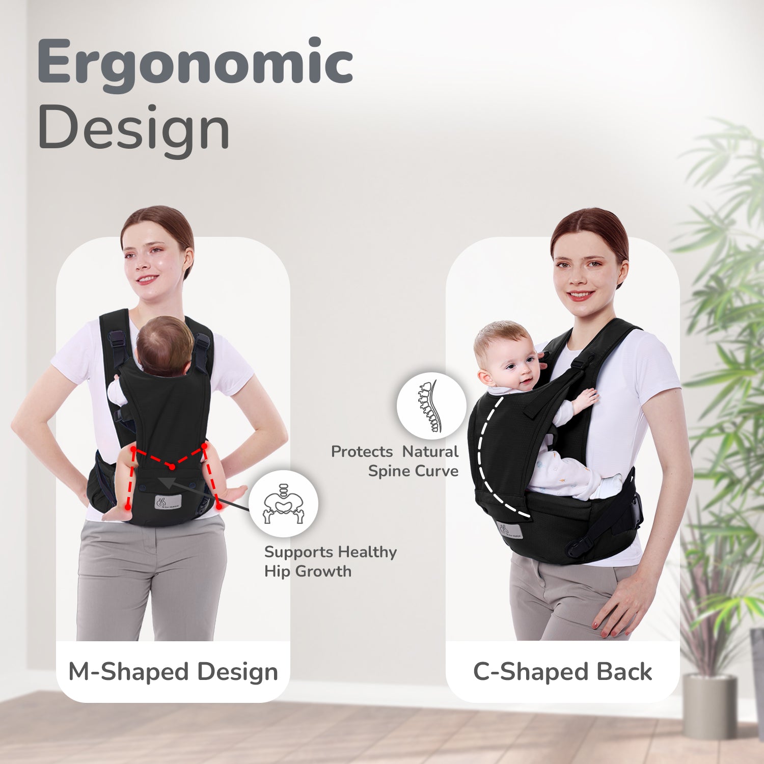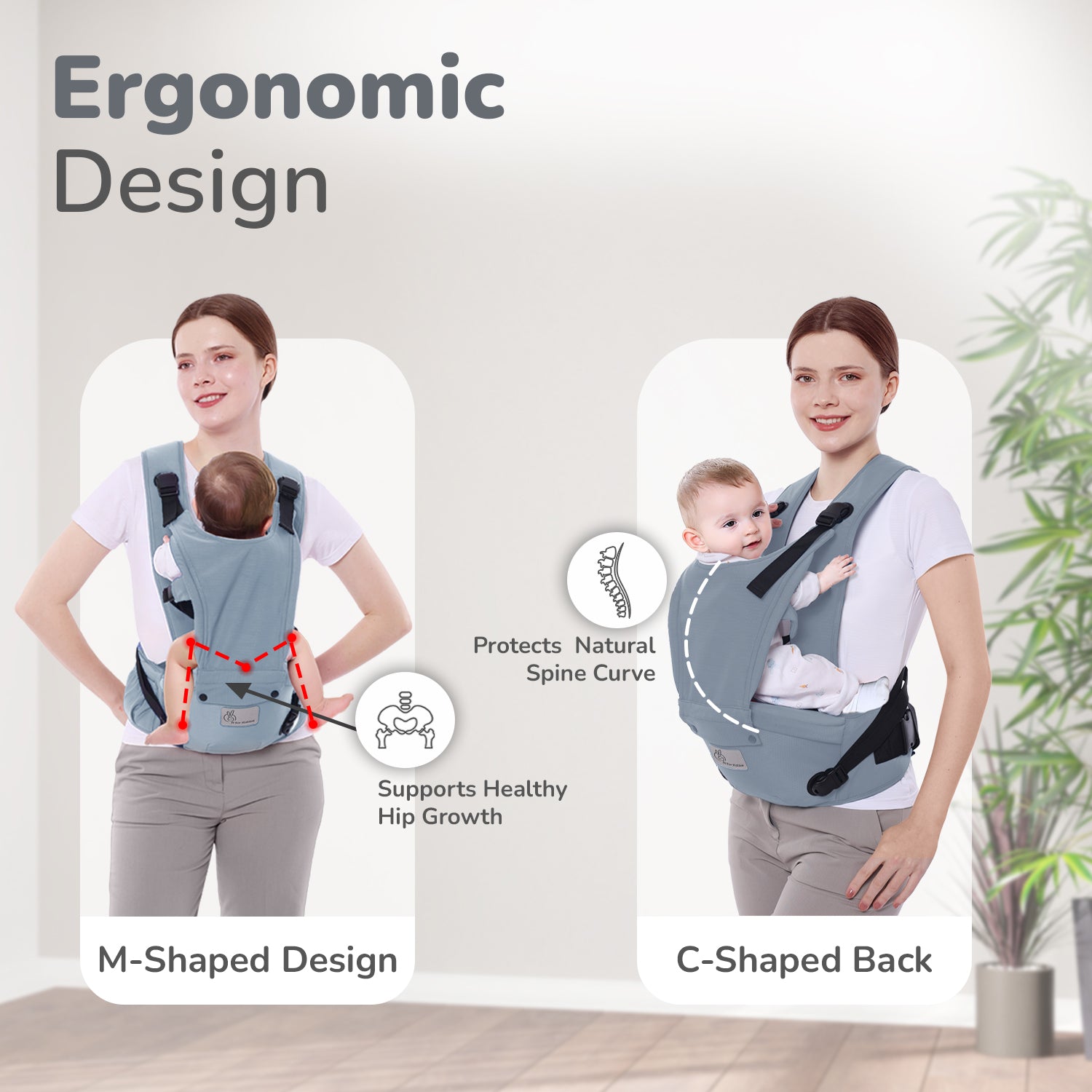Ergonomic “M” Position: It is also designed with an ergonomic “M” position to provide the baby with a supportive environment for healthy hip development, spine support, and comfortable posture, as recommended by the paediatricians.