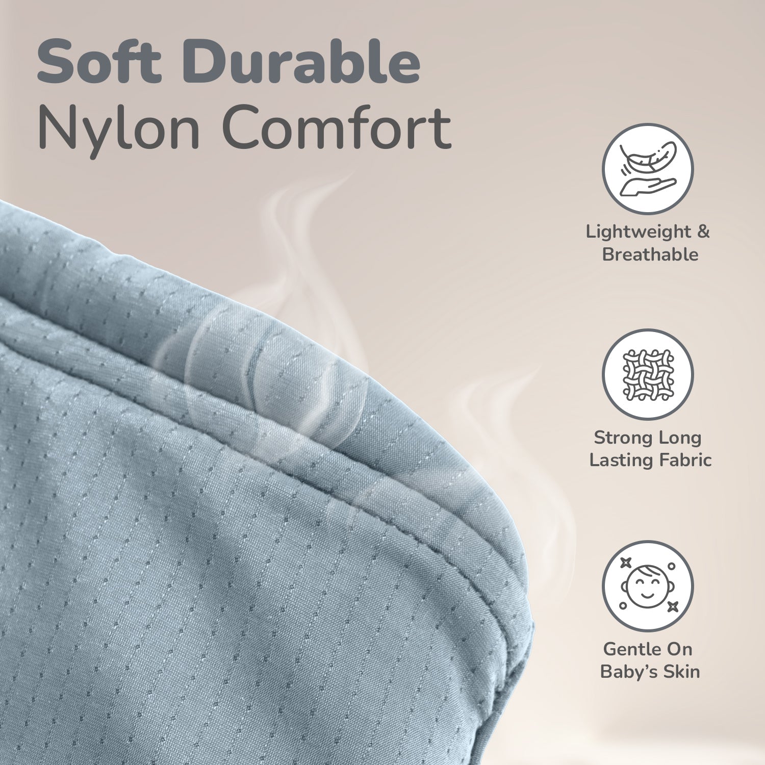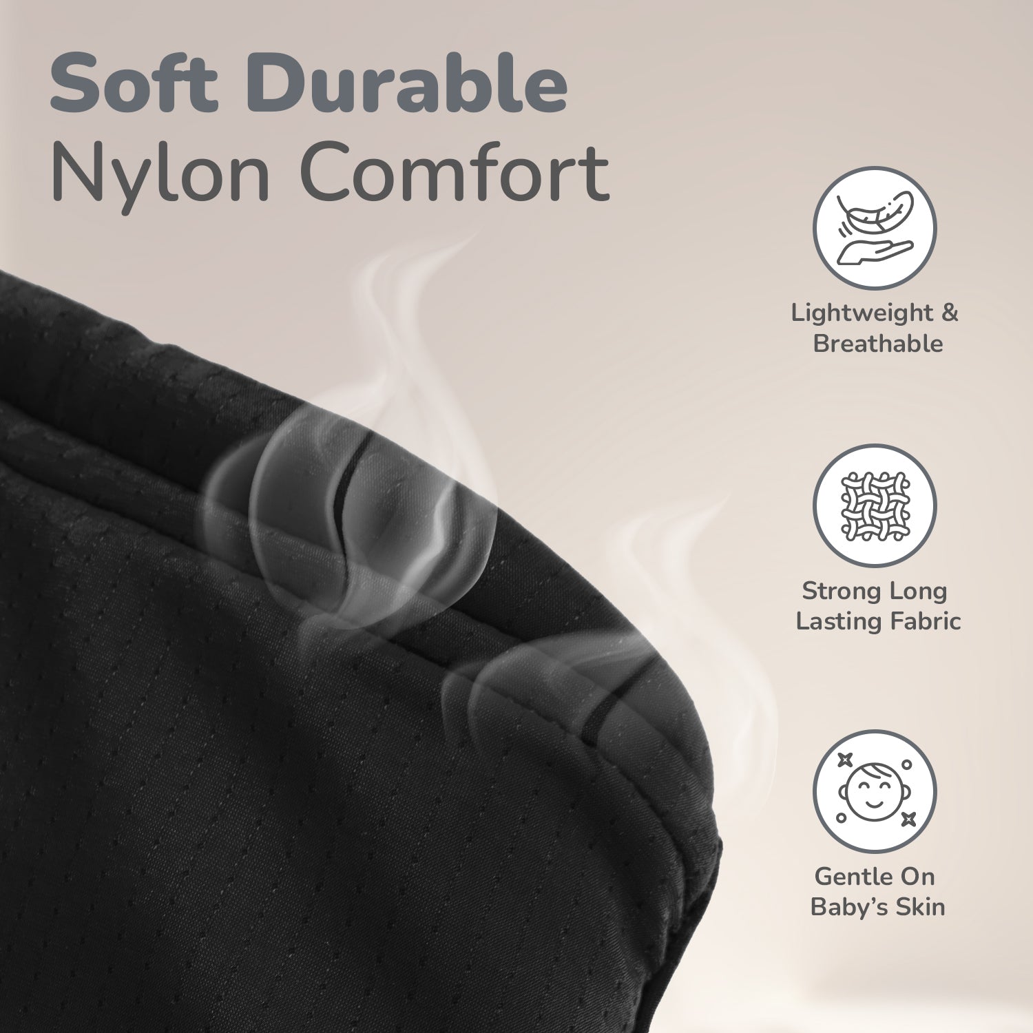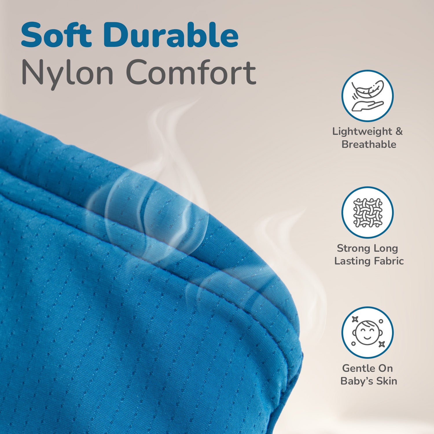Lightweight Nylon Fabric: This baby carrier is perfectly designed for the overall comfort and convenience of both the mother and the baby. It is lightweight and breathable with high tensile strength for secure support. It also dries faster, protecting the baby’s sensitive skin during long outdoor use.