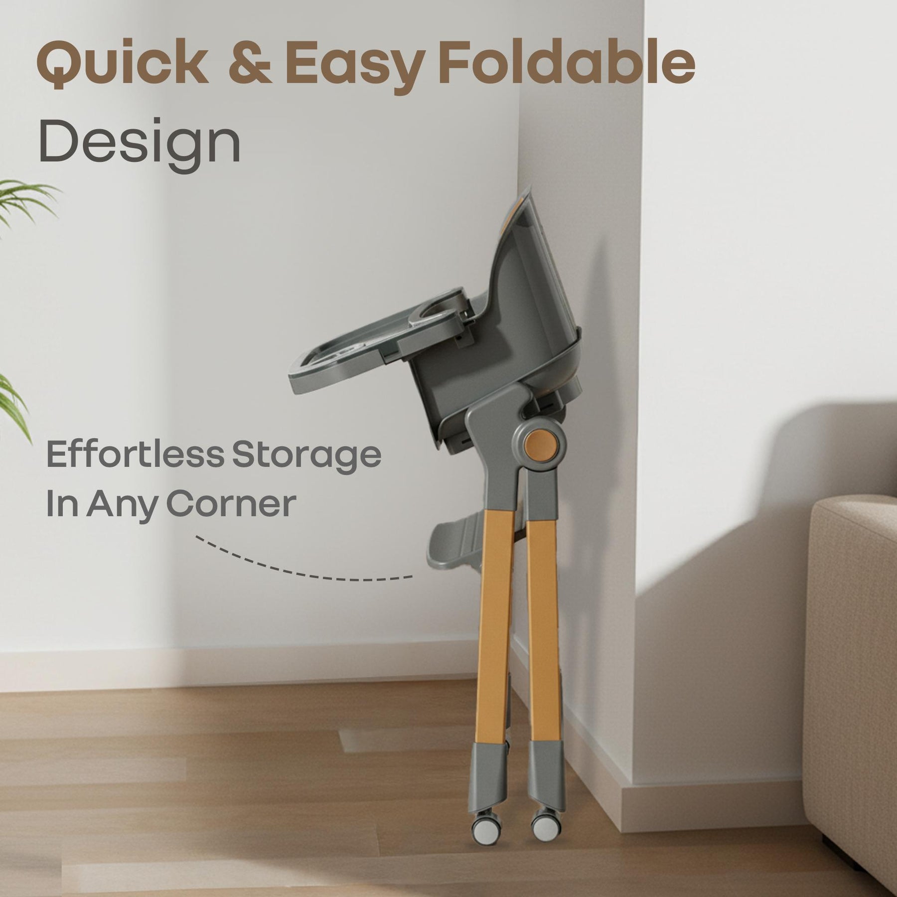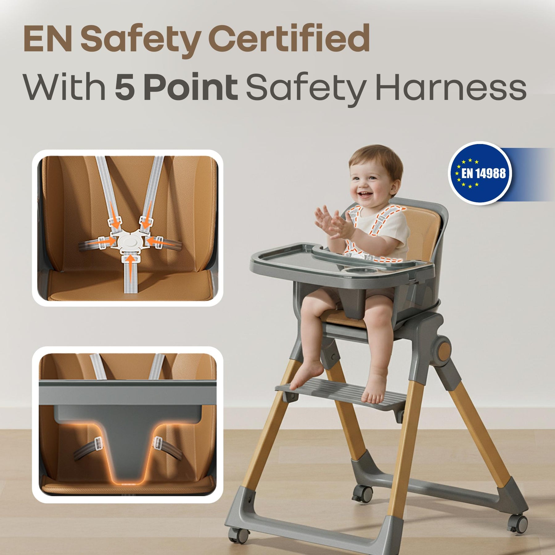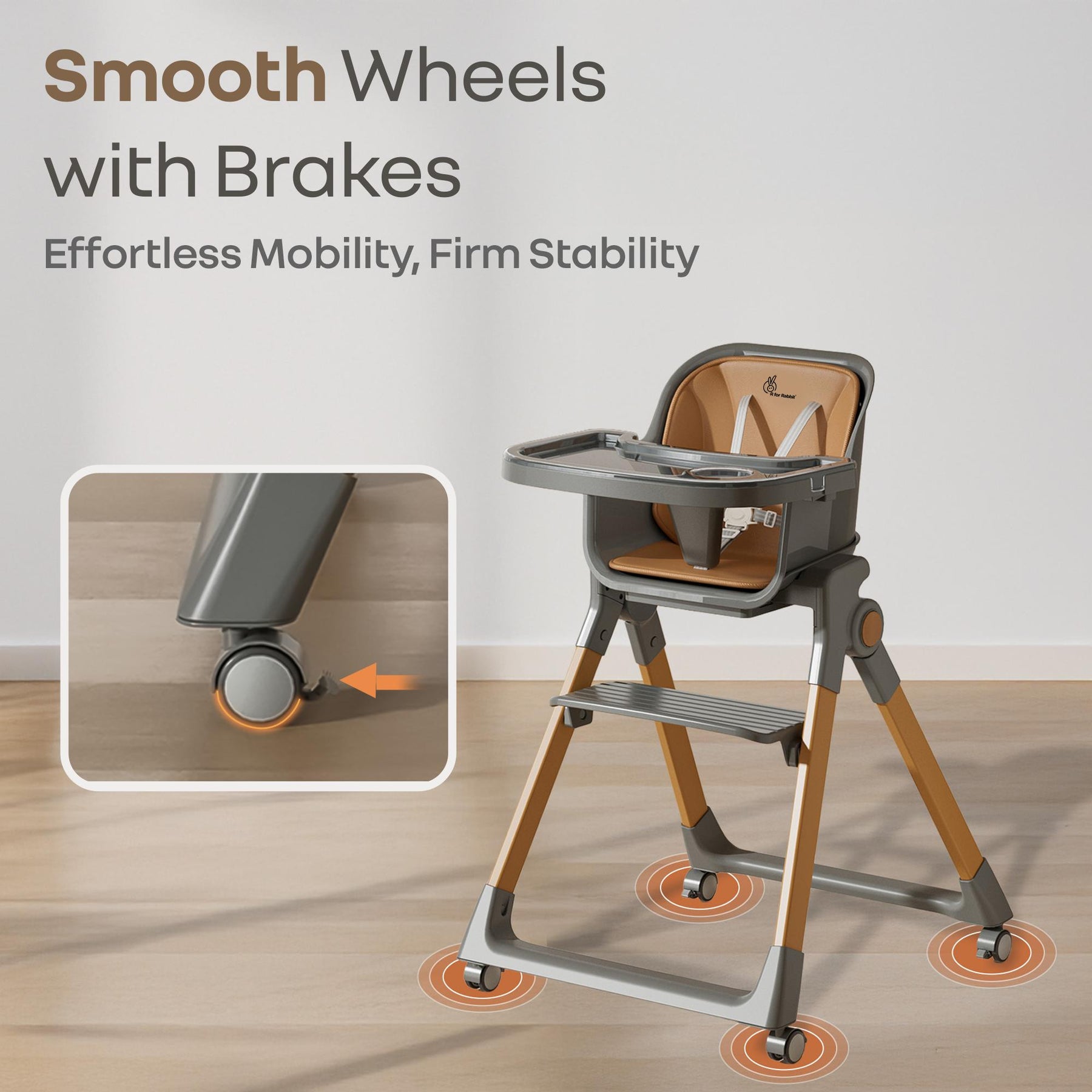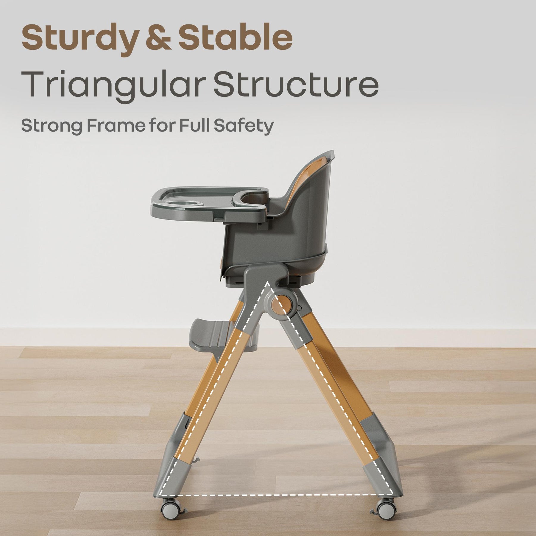 Walnut High Chair - 3 in 1 Convertible kids Highchair with Booster & Stool